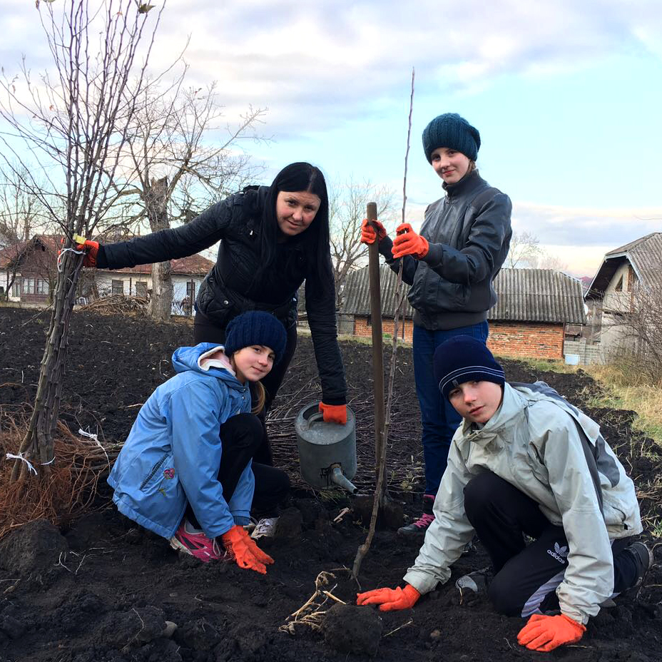 The whole family got involved in preparing land and planting the trees in their new orchard. The children were so excited to take part, and can’t wait to see the trees bloom in the spring!