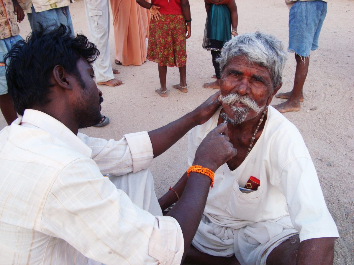 2020 is the year of long hair and full beards! After COVID-19 restrictions are lifted, we’re sure getting a haircut or nice shave is at the top of many people’s lists. On one of our trips to India, we captured this lovely photo of an elder being treated to a gentle shave and haircut.