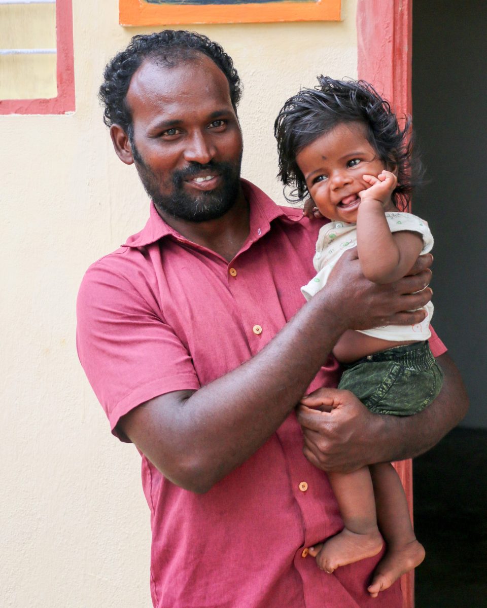 Wow, look at those locks! This dad and baby from our Tamil site in India are posing in front of their new home that they received from kind donors through our gift catalogue! We adore their sweet smiles, and that crazy baby hair!