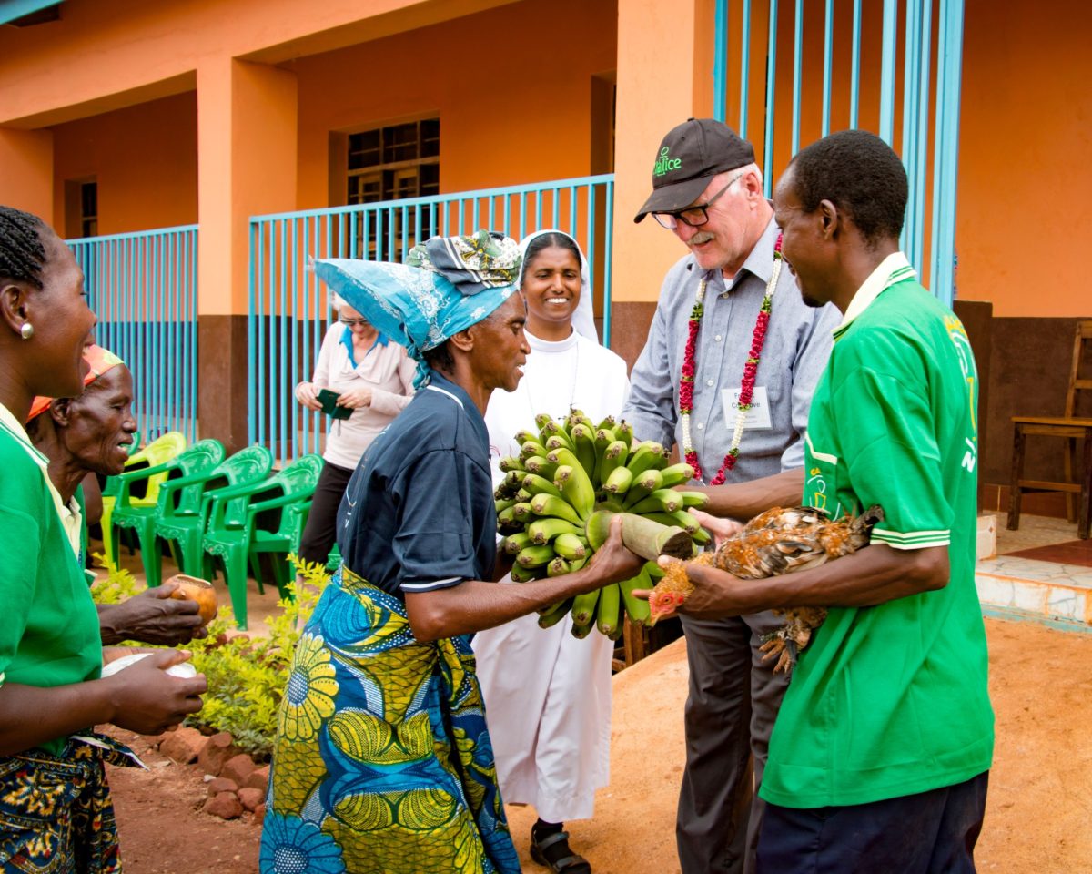 In Mkongo, Tanzania, mothers from Chalice family circles were excited to hear that our founder, Fr. Pat, would be their guest for the afternoon. Many mothers offered him samples of goodies from their farms such as nuts, eggs, and of course, bananas!