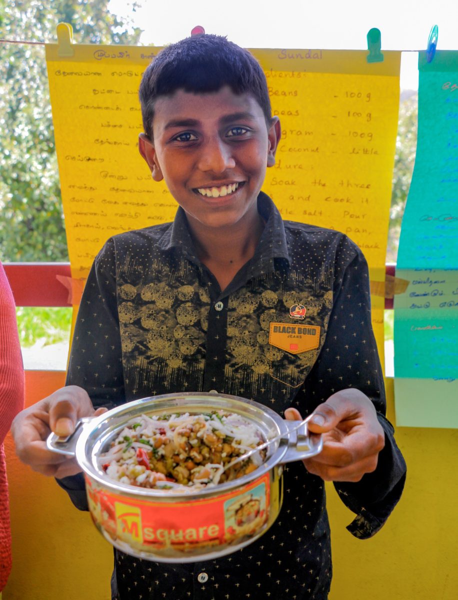 Families in Kodaikanal, India, held a homemade food festival to showcase their favourite recipes to the Sisters and staff who run St Teresa’s school. This young man would like you to try his family’s recipe for sundal, which is spiced chickpeas with coconut!