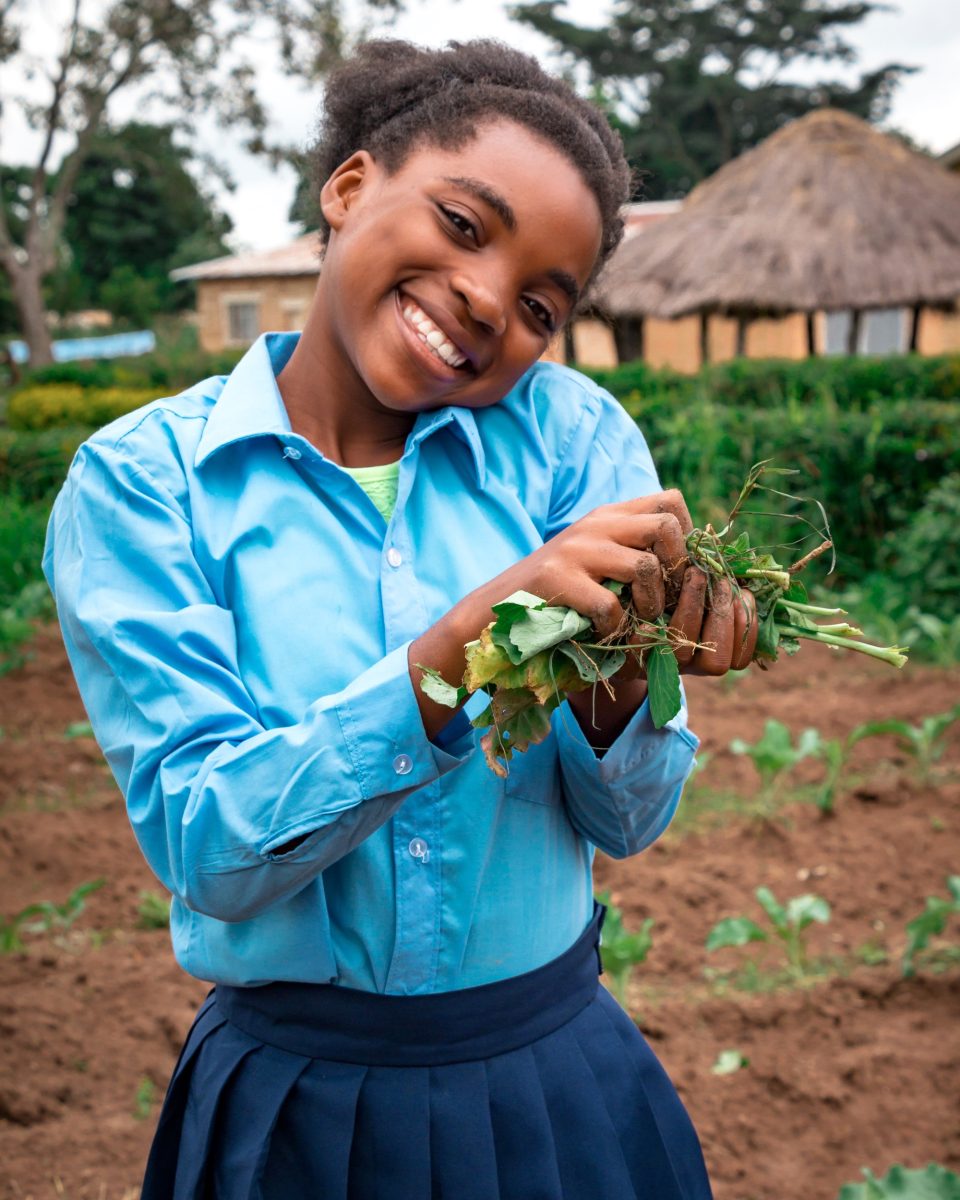 This student from our Kawambwa site in Zambia has her hands full helping out in her school’s garden. Her radiant smile stands out like a sunflower, and brightens up the entire field!