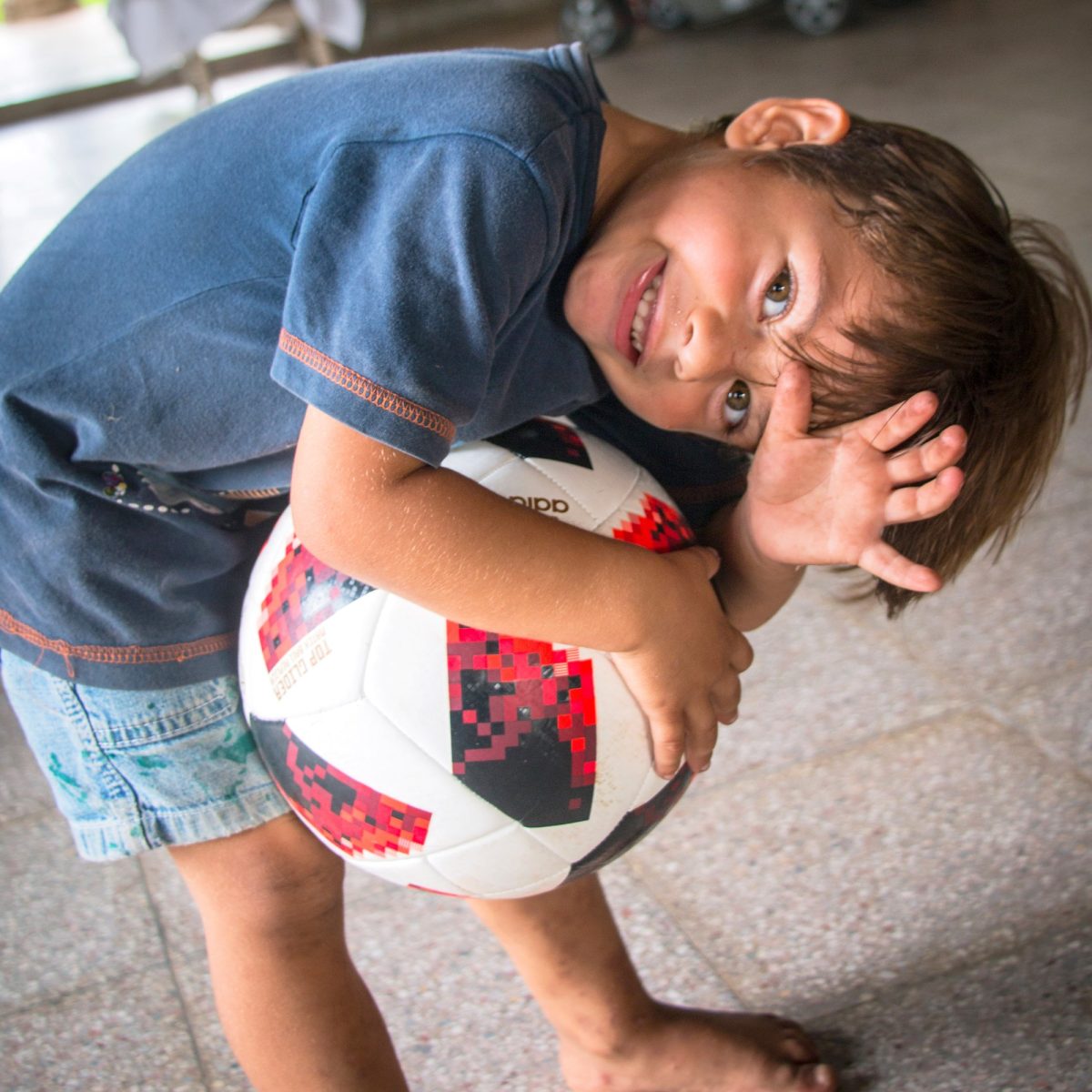 Peekaboo, we see you! This adorable little boy from our CMAVIL site in Paraguay is eager to play a game of soccer, a most beloved sport in his home country. His cute smile and wave is heart-melting!
