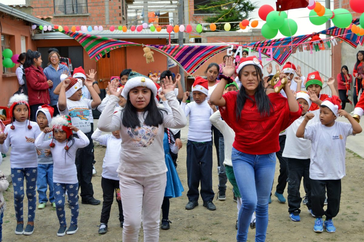 In Bolivia, Christmas celebrations at our sites include games, contests, music, and dancing! Family circles take special care in rehearsing and performing different traditional dances for their peers, and a special greeting dance called “Chuntunquis” to honour the baby Jesus. One year, a group of mothers prepared beautiful dance costumes with recycled materials including rice and sugar bags, and old CDs!