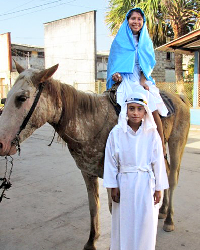 As per tradition, Mary and Joseph asked for “posada”, a place to stay, to people they met as they walked. This was an unusual site in this little town! Posada celebrations are usually done at night, so seeing this in the daylight was intriguing. Many came out to watch or joyfully join!