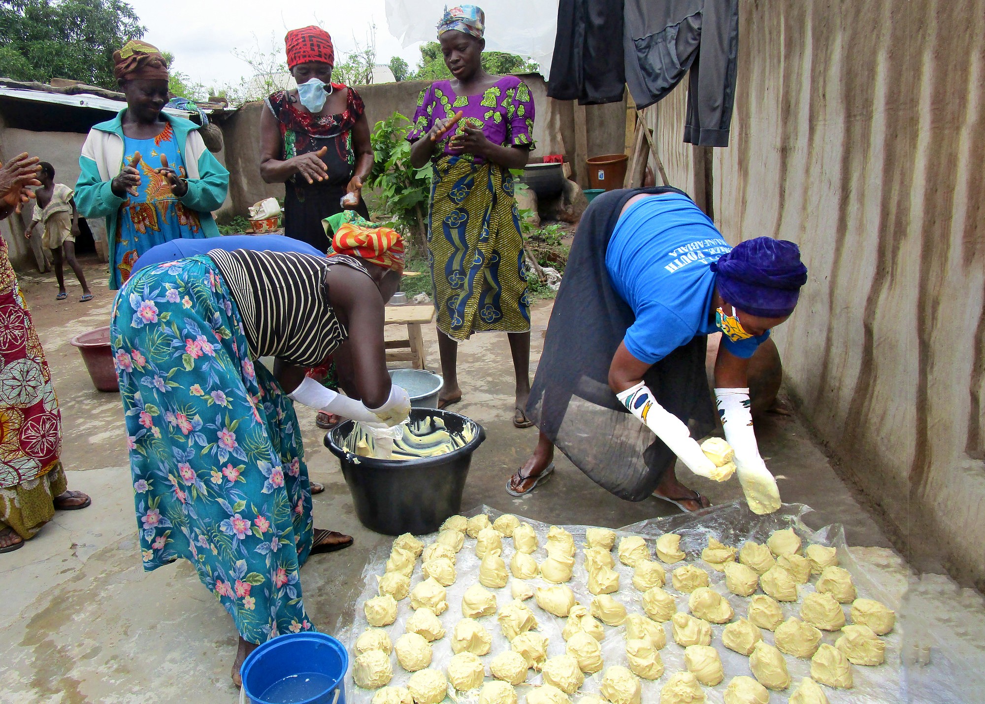 Our Ghanaian sponsor sites work to raise the economic and social status of women by helping them become entrepreneurs. Three groups of 20 women take turns using a soap-production facility that was built with the help of kind Chalice supporters.
