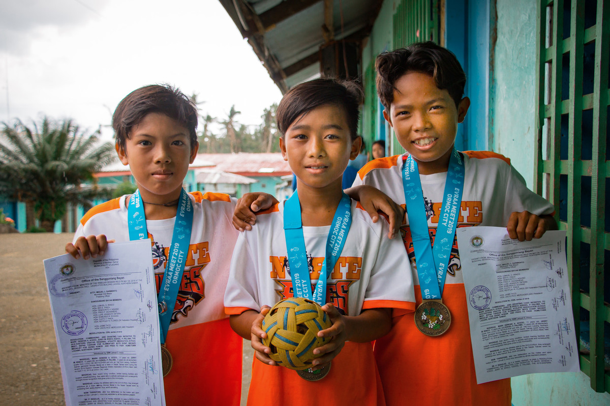Sepak Takraw is a beloved Filipino game that resembles a hybrid of volleyball and soccer. The children rally a ball across a net, but only with their feet and heads. This year, the Liceo school team won the district, provincial and national meets. And these three were declared MVPs of northern Samar!