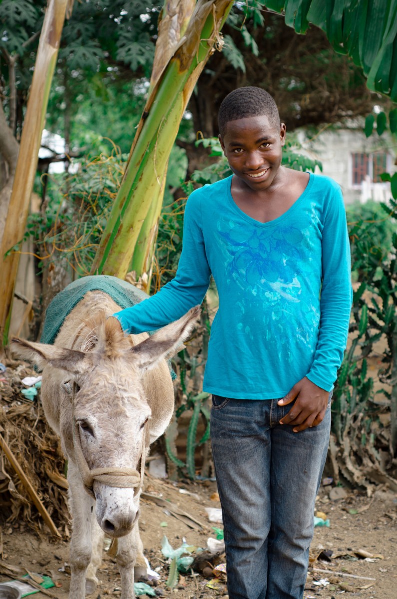 The perfect accessory to a donkey is a bright-blue shirt, and this boy at our Haiti North site can tell you all about it. Notice the matching cloth worn by the donkey – these two are showing up in style.