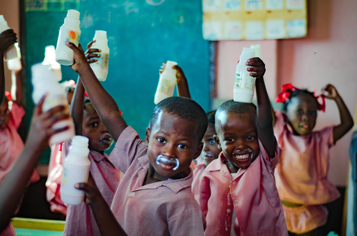 Have you ever tried posing for a group photo during a meal? As these kids at our Haiti North site surely know, it sometimes means a surprise new facial feature – like a yogurt mustache!