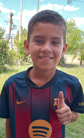 Carlos is a 9-year-old boy who lives in Sol Naciente, Paraguay. He is in grade 4 and especially enjoys his math class. Carlos loves playing soccer and spends time developing his skills at a local soccer school. He is a cheerful and affectionate boy who enjoys being active and spending time with others. Carlos dreams of becoming a professional soccer player one day, and also hopes to become a lawyer. Carlos lives in a brick home with a tile roof, together with his mother and sister. Sponsorship enables children to attend class every day and have the supplies they need to complete their education, grow up healthy, and achieve their dreams.