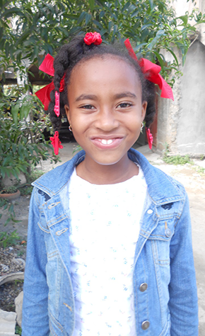 Farline is a 10-year-old girl from Terrier-Rouge, Haiti. She is in Grade 5 at Saint-Barthélemy School and attends classes each day with great enthusiasm. Farline is well-adjusted at school and enjoys spending time with her classmates, especially playing jump rope.