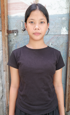 Renalyn is a responsible 13-year-old girl from Manila, Philippines. She is in Grade 7 and loves literature class, especially reading and sharing stories. One of her favorite activities is reading books to younger children, which reflects her caring nature.