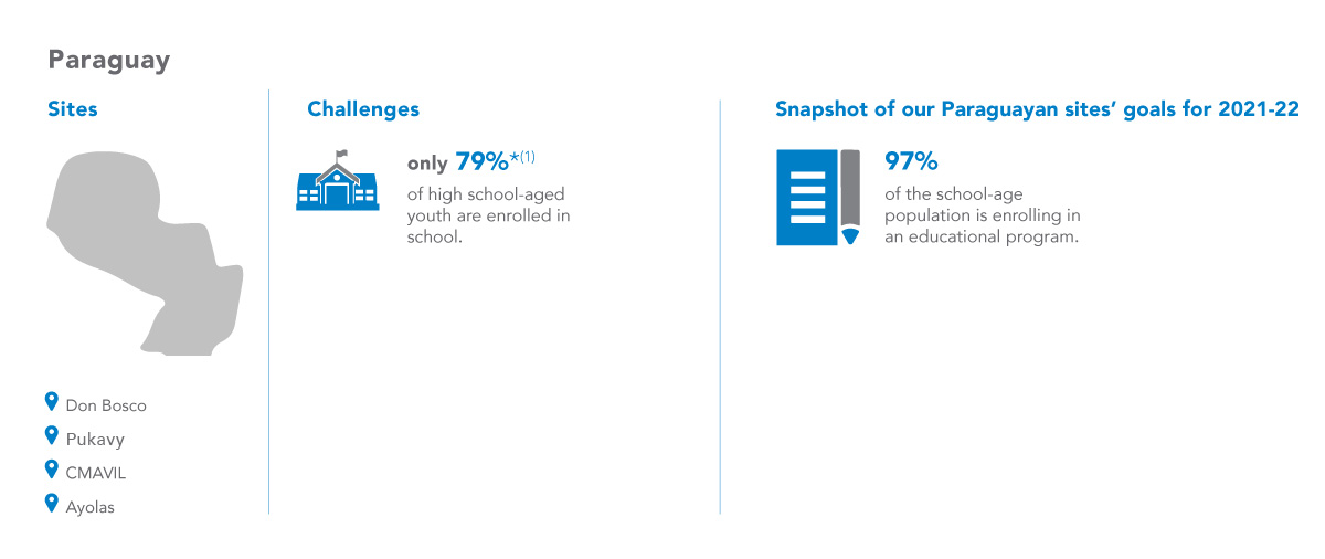 Children in Paraguay are at a high risk of dropping out of school to find work, exacerbated by the high cost of education after junior high, and few opportunities for higher studies. Therefore, Chalice focuses on after-school support programming to keep children in school.